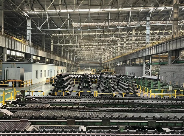 记者跟随李刚来到热处理生产线上,通红滚烫的钢管从高温炉中缓缓送出,炉火的余温扑面而来;经过水淬火,钢管进入回火处理环节,细密的水柱如飞瀑般倾泻而下,水蒸气瞬间腾起。李刚一边检查设备,一边向记者介绍:“这是国内通用的工艺流程,质量要靠精准温度控制来实现。”不同规格的钢管需要不同的温度设置,而一个炉子中每个区段的温度也各不相同,还要经过严格的测试,所有的系统参数都是通过长期摸索和无数次失败后总结出来的诀窍。